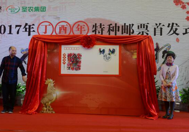 揭幕儀式由光澤縣人民政府、圣農(nóng)攜手中國郵政集團(tuán)公司光澤縣分公司聯(lián)合主辦,常務(wù)副總裁陳榕為首日封揭幕,并在首發(fā)式上講了話,她說郵票被譽為國家名片,是特殊的文化傳播媒介,而生肖是產(chǎn)生于我國的一種古老民俗文化現(xiàn)象。雞在中國十二生肖中排名第十,代表著誠信,象征著吉祥。特種郵票的發(fā)行,將有利于樹立圣農(nóng)企業(yè)新形象,促進(jìn)企業(yè)文化建設(shè)的提升,打造出企業(yè)對外交流的新載體。