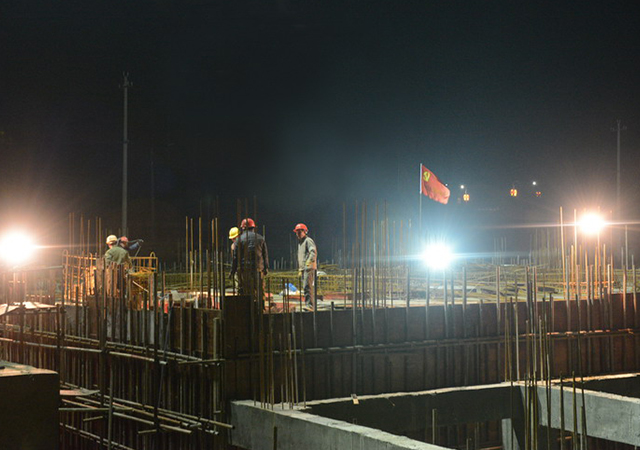 項(xiàng)目建設(shè),拼的就是速度。3月14日晚,在圣農(nóng)公司飼料五廠建設(shè)工地上, 100多名施工人員正在挑燈夜戰(zhàn),緊張地釘模板、扎鋼筋。飼料加工事業(yè)部總監(jiān)傅延鋒說,3月上旬連日陰雨,今天是難得的晴天,大家白加黑連軸轉(zhuǎn),一天當(dāng)作2天用,確保今年11月飼料五廠按時(shí)投產(chǎn),建成后飼料五廠將成為國內(nèi)先進(jìn)、自動化程度高的飼料廠。