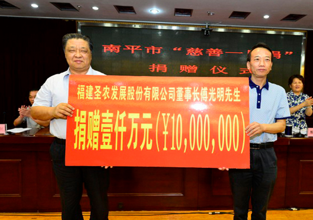 從最初的捐建“光澤縣希望小學(xué)”,到救災(zāi),再到汶川、玉樹地震捐款,可以說每當(dāng)社會有災(zāi)難和不幸的事情發(fā)生,每當(dāng)有弱勢群體需要救助的時候,他都會義無反顧地慷慨解囊,向善而行的執(zhí)著匯集成溫暖社會的大愛,凝聚成許許多多弱勢群體實現(xiàn)夢想的力量。 20多年來,他累計向慈善事業(yè)捐贈超過17億元,成為南平市捐贈金額最多的企業(yè)家,被南平市委、市政府授予“慈善家”稱號。 慈心濟貧拔苦,德高者行自遠(yuǎn)。他是中國白羽肉雞行業(yè)企業(yè)家社會參與意識和貢獻(xiàn)的珠峰,至今為止,鮮有人可以望其項背。 “作為一名共產(chǎn)黨員企業(yè)家,不單要辦好企業(yè) ,也要在履行社會責(zé)任的方方面面都走在前列。沒有全力去回報社會的黨員談對黨忠誠,是空話”。 2004年,集團工農(nóng)業(yè)總產(chǎn)值首次突破10億元,此時,不少人勸傅光明董事長把總部遷移到大城市。
